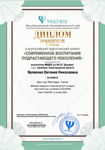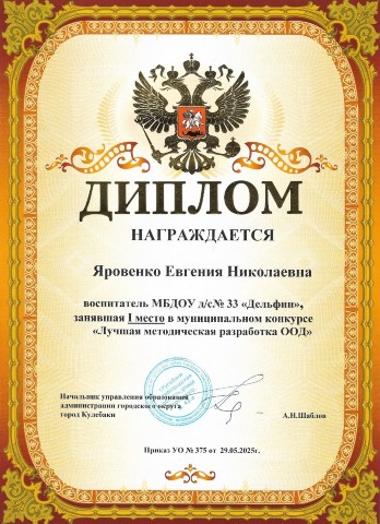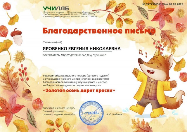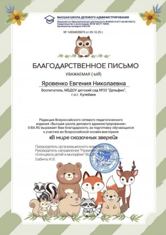 Персональный сайт воспитателя МБДОУ д/с №33 "Дельфин" Яровенко Евгении Николаевны