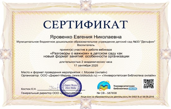Третий курс вебинаров по вопросам развития и воспитания детей дошкольного возраста 36 часов 2022г. "Воспитатели России"